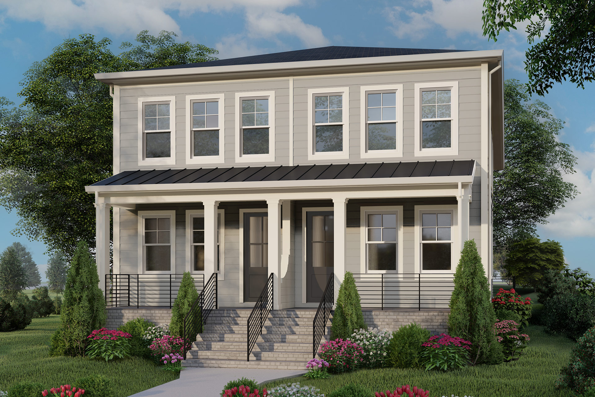 Located in Alexandria’s Beaumont neighborhood, these custom luxury duplexes offer 3,230 square feet of contemporary living space. The open-concept main level centers on a gourmet kitchen and a large living room, complemented by a private den ideal for a home office.